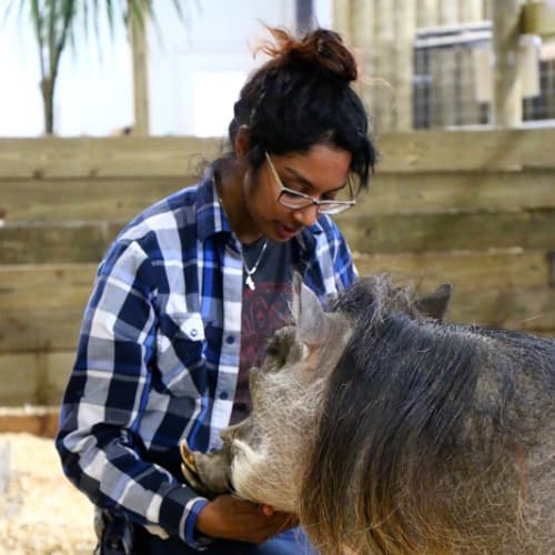 The staff at Alveus all work at our facility in Texas, providing care to our animal ambassadors on a daily basis, cleaning enclosures and maintaining the property, and ensuring we can provide the best online education experience for livestream viewers.